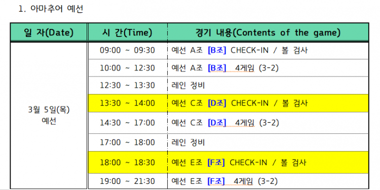 [변경 안내] 2026 퍼펙트코리아컵 프로볼링대회 아마추어 예선 타임 테이블 변경 안내 페이지 정보 작성자 한국프로볼링 작성일 26-03-04 13:08 조회 2,312회 댓글 0건 본문 원활한 경기 진행을 위해 아마추어 예선 C/D조, E/F조 체크인 시간이 변경 되었습니다.C/D조 E/F조 선수분들께서는 원활한 경기 진행과 주차를 위해 체크인 시간을 지켜서 도착해 주시기 바랍니다. 추천0 이전글[조배정] 2026 퍼펙트코리아컵 프로볼링대회 본선 조배정 다음글[조배정] 2026 퍼펙트코리아컵 프로볼링대회 예선전 조배정 목록 댓글목록 0 댓글목록 등록된 댓글이 없습니다.