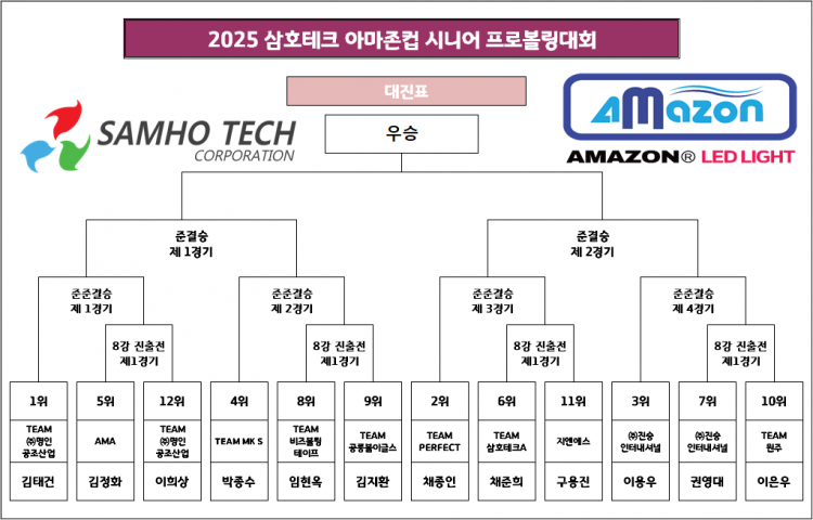 [대진표] 2025 삼호테크 아마존컵 시니어 프로볼링대회 TV파이널 대진표 페이지 정보 작성자 한국프로볼링 작성일 25-08-06 15:10 조회 673회 댓글 0건 본문 2025 삼호테크 아마존컵 시니어 프로볼링대회 TV파이널 대진표 추천0 이전글[명단 공지] 제4회 안동컵 국제오픈볼링대회 예선 확정자 공지 _250812 다음글[명단] 2025 삼호테크 아마존컵 시니어 프로볼링대회 준결승 진출 명단 목록 댓글목록 0 댓글목록 등록된 댓글이 없습니다.