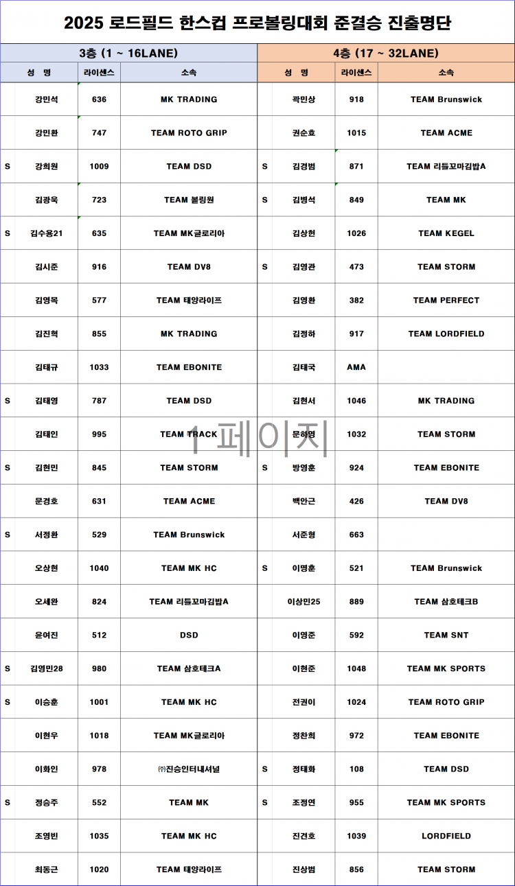 [명단] 2025 로드필드 한스컵 프로볼링대회 준결승 진출 명단 페이지 정보 작성자 한국프로볼링 작성일 25-12-02 22:03 조회 2,084회 댓글 0건 본문 추천0 이전글[대진표] 2025 로드필드 ·한스컵 프로볼링대회 TV파이널 대진표 다음글[KPBA-2025] 한국프로볼러선발전 남자31기 여자19기 선발전 2차 합격자 공지 목록 댓글목록 0 댓글목록 등록된 댓글이 없습니다.
