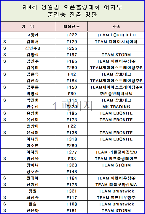 [명단] 제4회 영월컵 오픈볼링대회 여자부 준결승 진출 명단 페이지 정보 작성자 한국프로볼링 작성일 25-10-22 00:11 조회 680회 댓글 0건 본문 제4회 영월컵 오픈볼링대회 여자부 준결승 진출 명단 추천0 이전글[대진표] 제4회 영월컵 오픈볼링대회 TV파이널 대진표 다음글[예선접수] 제10회 상주 곶감컵 오픈볼링대회 예선전 접수 링크 공지 목록 댓글목록 0 댓글목록 등록된 댓글이 없습니다.